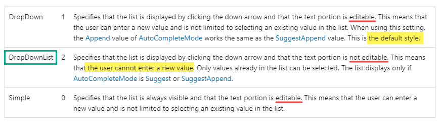 참고 : https://msdn.microsoft.com/ko-kr/library/system.windows.forms.combobox(v=vs.100).aspx