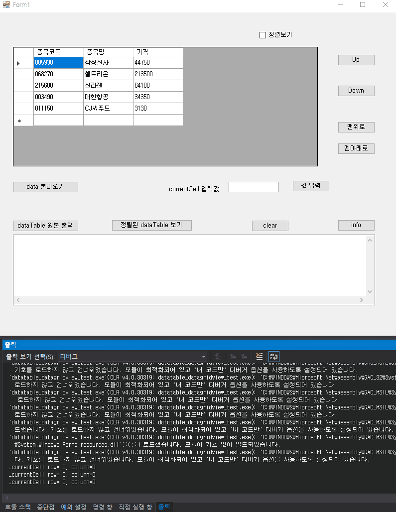 C# -- DataGridView 정렬과 row 이동하기