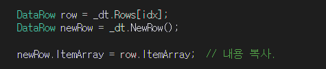 ** DataTable row 복사하기